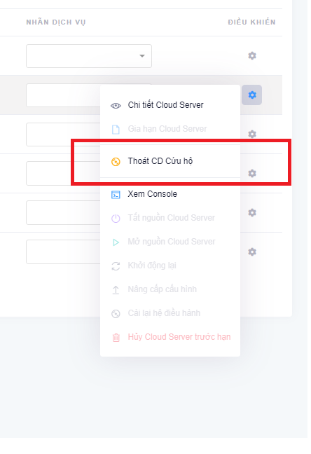 Bước 1: Tại VPS cần reset lại mật khẩu chọn “Khởi động CD cứu hộ“